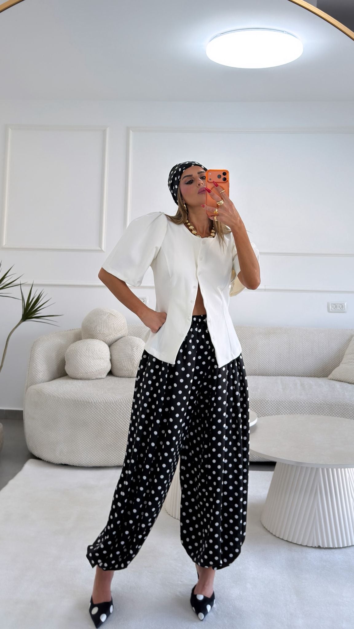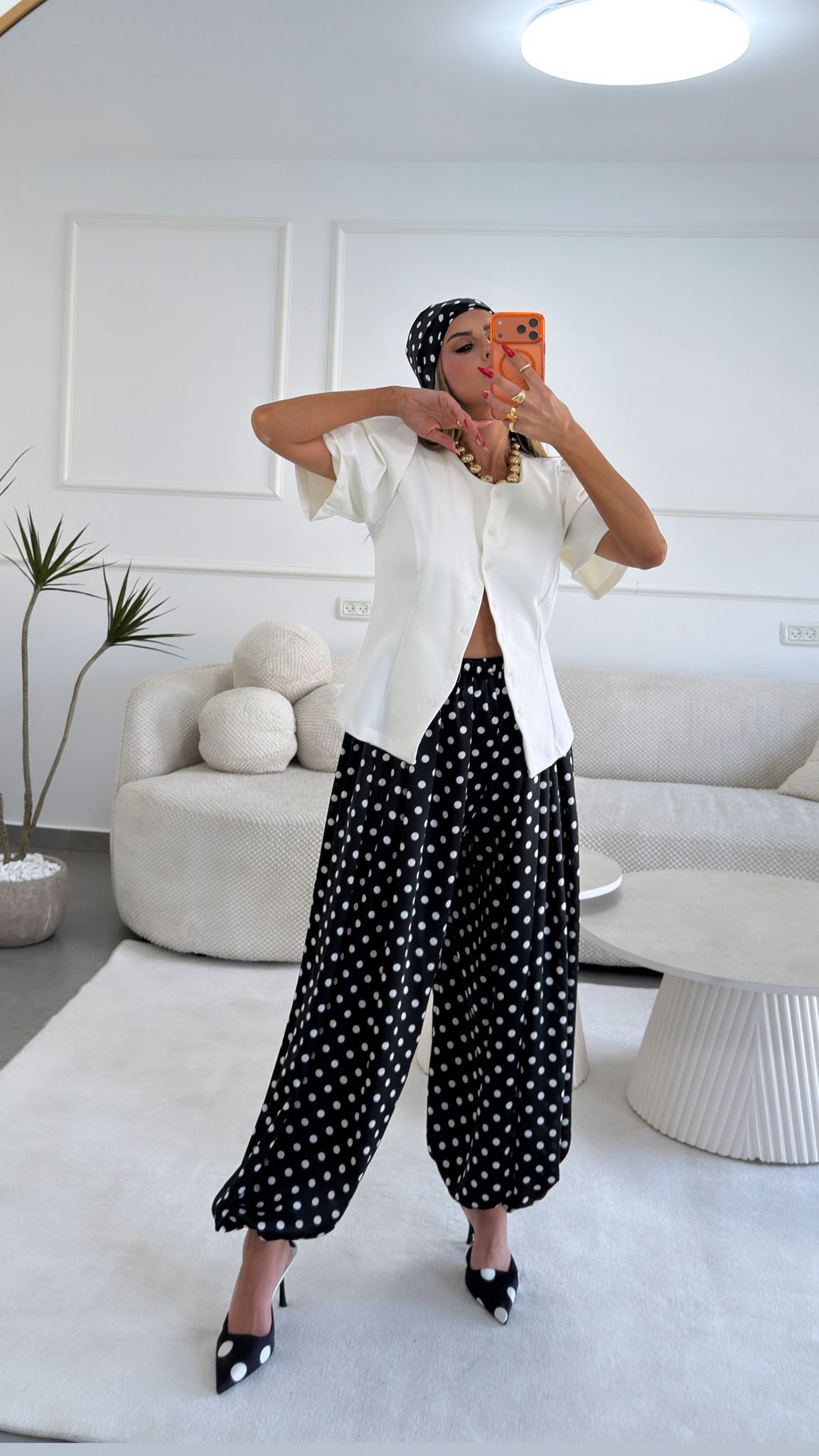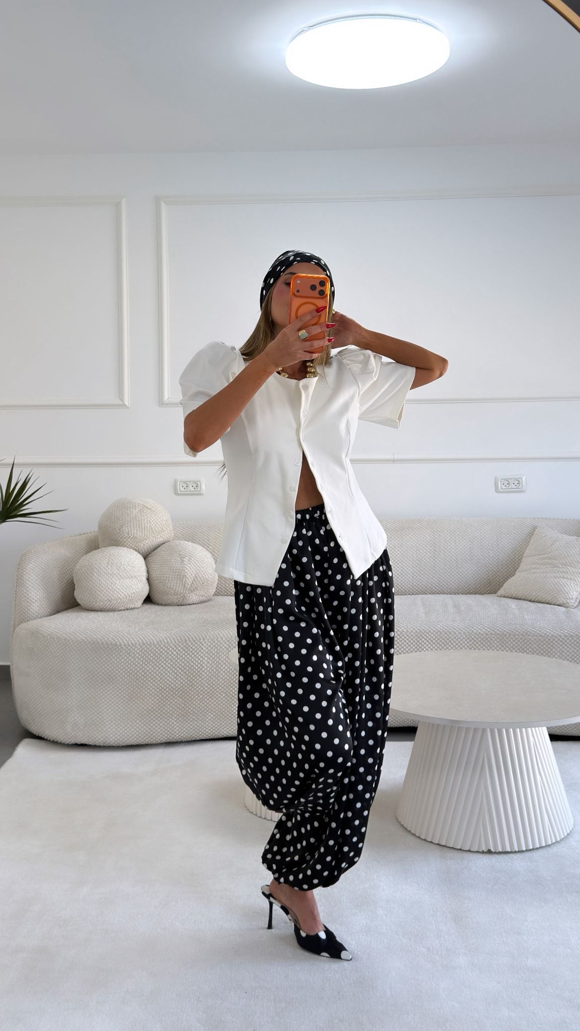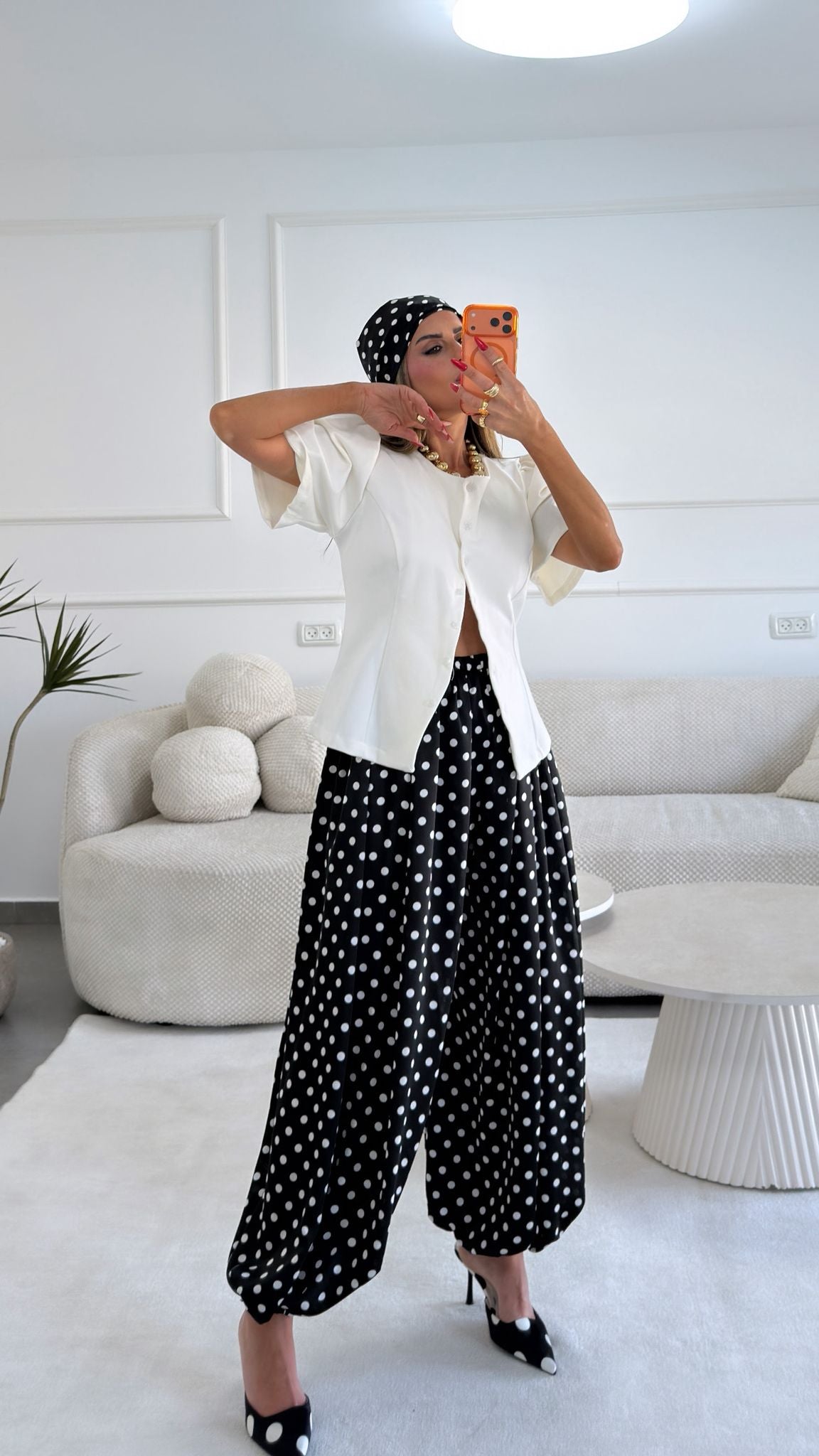 מכנסי בלון בהדפס נקודות גזרה נינוחה ומחמיאה עם נוכחות אופנתית מראה אלגנטי ייחודי