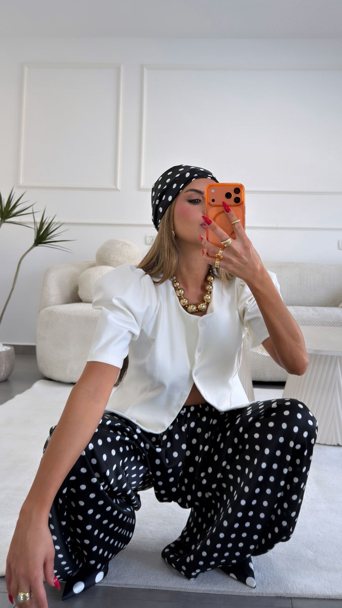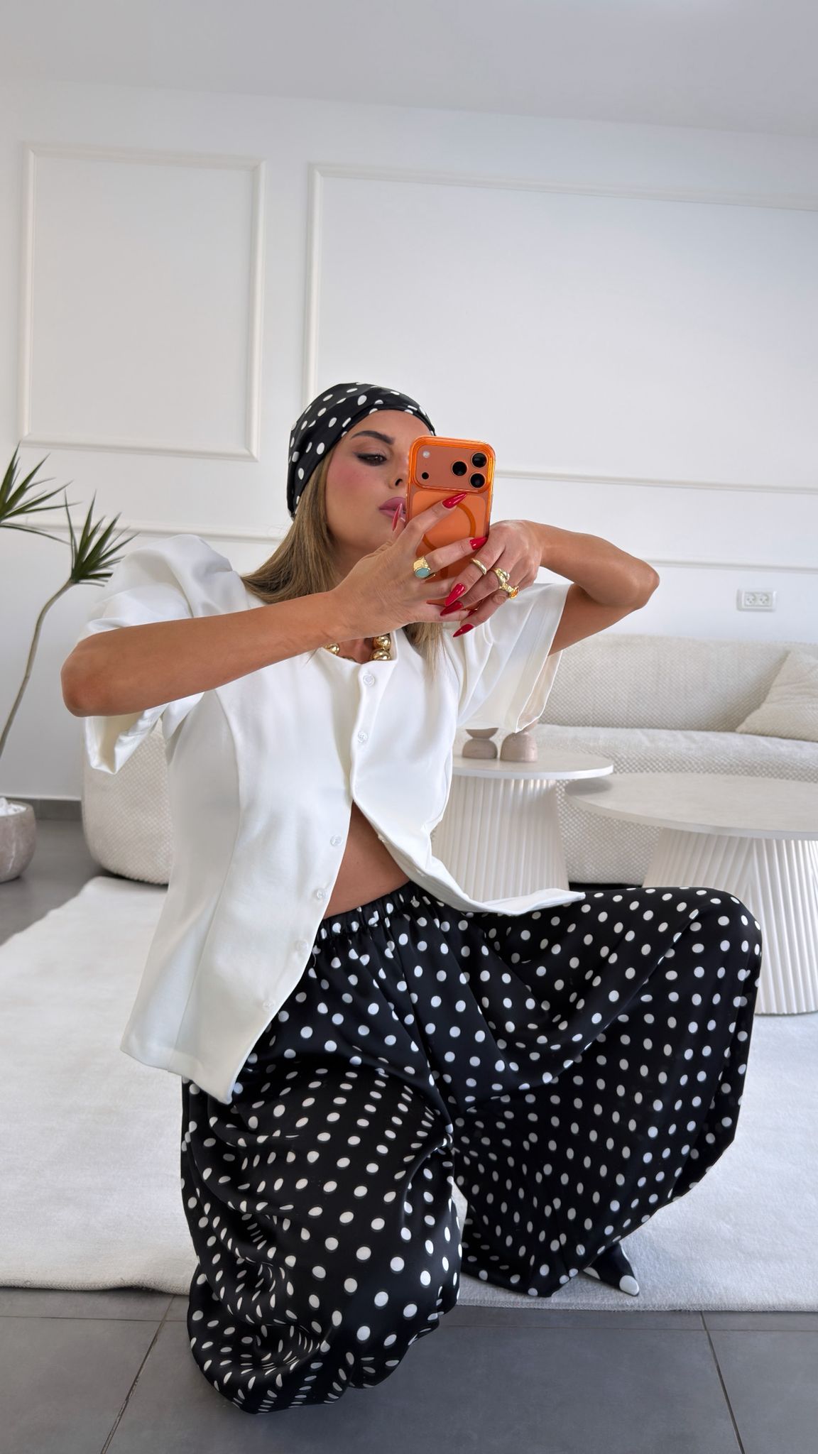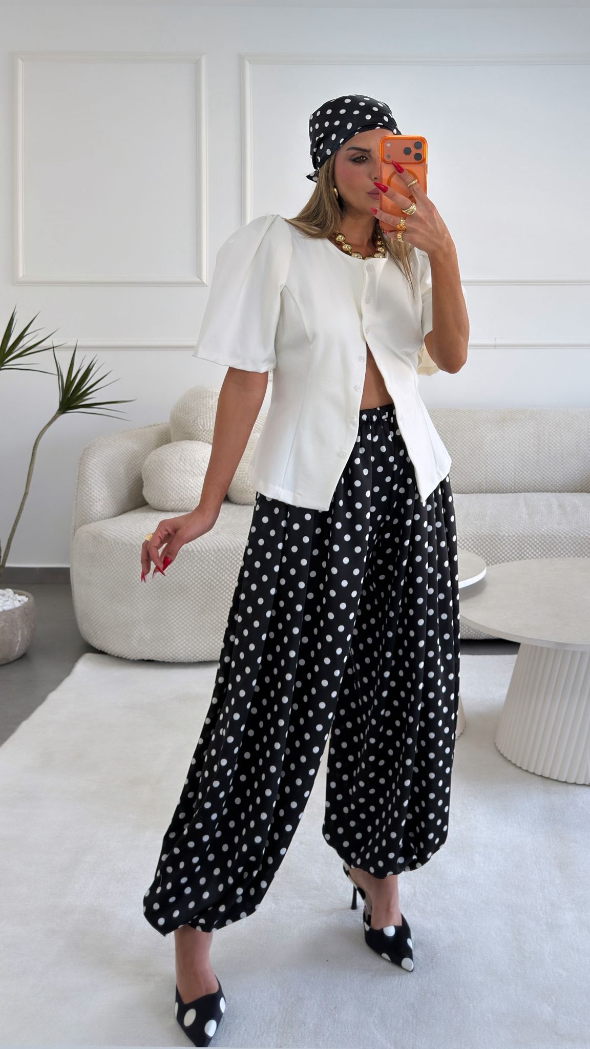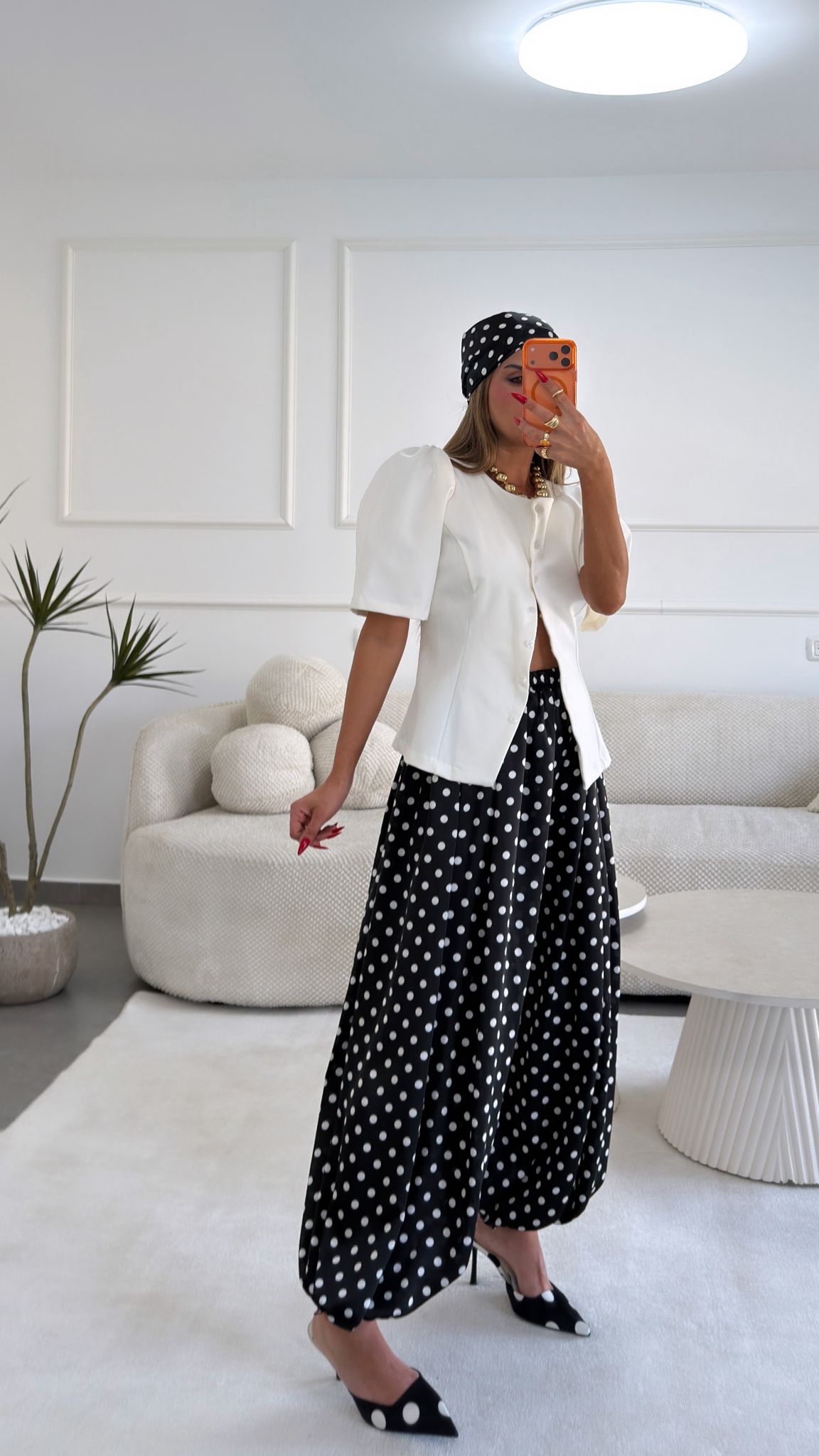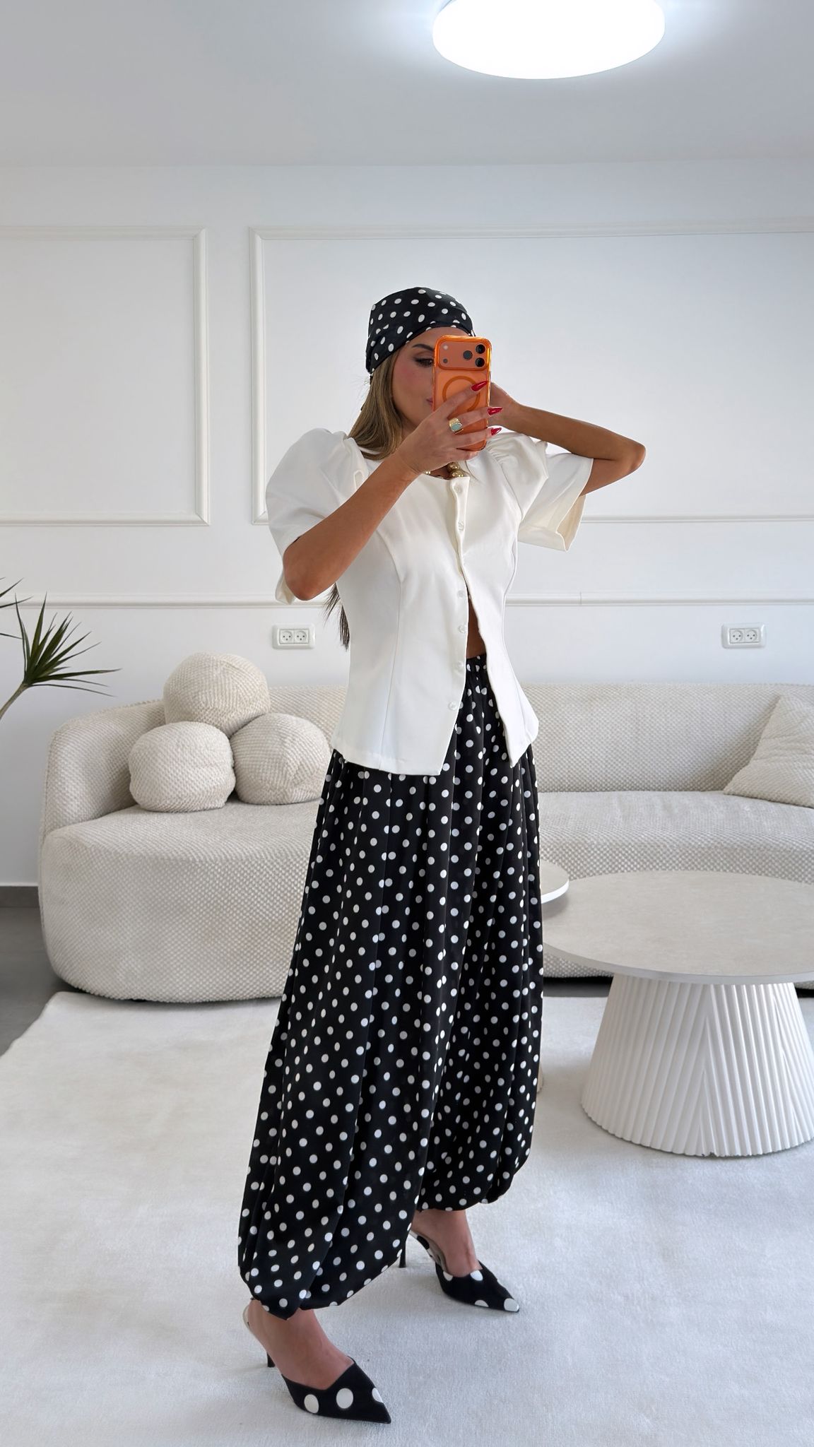 מכנסי בלון בהדפס נקודות גזרה נינוחה ומחמיאה עם נוכחות אופנתית מראה אלגנטי ייחודי